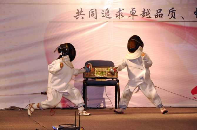 此次第十六次VIP温情课堂的击剑表演是品质文化十二月内容之一