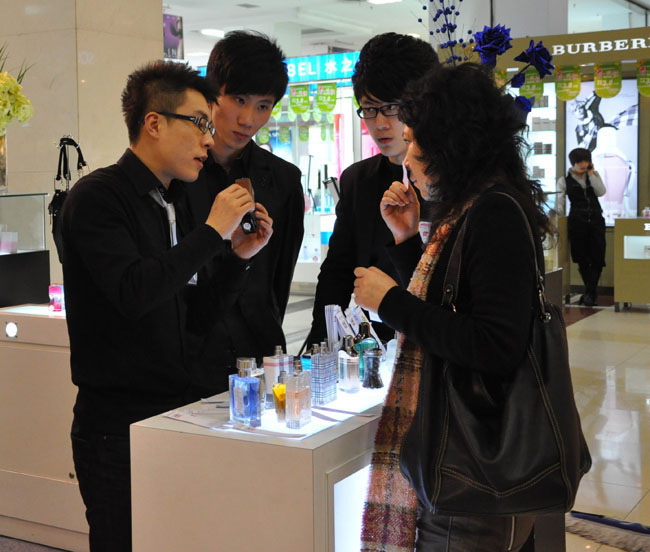 珠宝、化妆品区的新品体验吸引了很多女性顾客