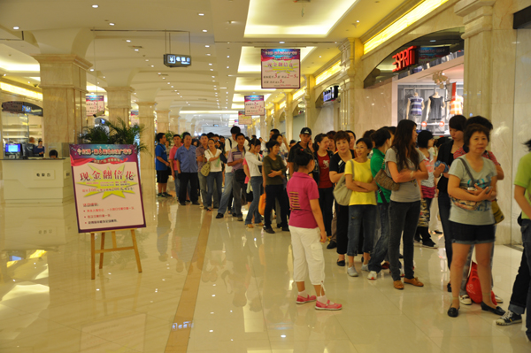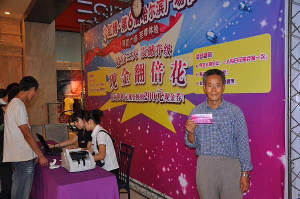 红博·第六届哈尔滨广场节自开幕以来,大力度的促销活动吸引了哈埠市民及周边市县的消费者前来购物。红博会展购物广场在广场节期间为了回馈广大消费者,在8月6日—8日最后三天震撼升级,推出限时花100元现金换购200元现金券的“现金翻倍花”活动,消费者纷纷提早排队换券,火爆场景空前。