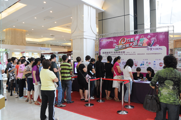 “购物幸运拍”现场顾客排起长队等待拍奖