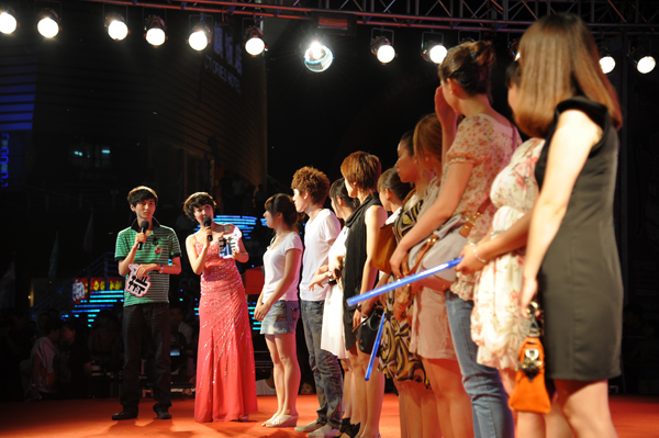 红博商业于立野副总经理介绍本届广场节的精彩内容 新晚报总编辑 激光舞表演、街舞表演以及超级菲迷的现场演绎得到了在场观众的阵阵掌声 现场抽取的10名幸运菲迷上台互动,赢取第一张王菲哈尔滨演唱会门票 首位“幸运菲迷”隆重揭晓,红博商业总经理 万名菲迷共同感受本届广场节的激情互动