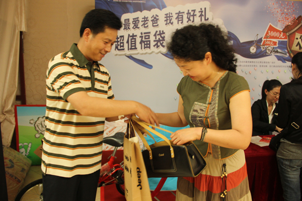 很多顾客都在父亲节期间纷纷购买心仪的商品来表达对父亲的感恩之心,但是消费者没有想到在红博会展购物广场的购物之余还换得了抽取现金大奖的机会。活动期间当天购物满888元的顾客用58元换得“最爱老爸 我有好礼”福袋1个,福袋的礼品有 MINI自行车、飞利浦剃须刀、500元、3000元现金大奖等众多“父亲节”礼品。一对夫妻在幸运中得3000元现金大奖时高兴地合不拢嘴,兑奖时对工作人员说:“本来是给双方的父亲买节日礼物,没想到来这里还有这种意外的惊喜,以前购物抽奖都是领到纪念奖,没想到这次中了大奖不说还是现金大奖,还是红博实惠,希望今后到这里能得到更多的幸运!”在场的其他顾客看到这种情况后更加跃跃欲试,希望这种幸运也能降临到自己身上,现场的气氛愈来愈热烈,幸运的顾客也接连不断的产生,随后的一位顾客抽中了手机一部,喜笑颜开的跟同伴说正好送老爸了。缤纷的礼品承载着浓浓的情意,化作感恩的心意回报给顾客,回报给天下可亲可敬的父亲。