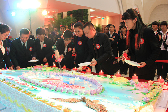 “这也太大了吧,壮观!”在生日币兑换处旁,围观的顾客正现场观摩红博九岁庆典蛋糕制作过程,记者粗略测量,蛋糕长约两米,宽约一米,主题“感恩许9,红博会展购物广场九周年重礼同庆”被簇拥在万花之间。现场市民纷纷拿出手机拍照,将活动场地围的水泄不通。蛋糕制作完成后,商场工作人员亲切的为在场市民分切蛋糕,得到蛋糕的顾客告诉记者:“昨天就看到这个大蛋糕制作过程,感觉挺壮观的,今天能分到一块,太幸福了。”